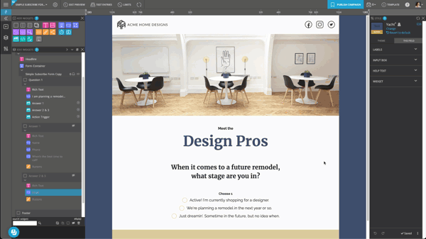 In this example built with ShortStack, selecting the “Active!...” response triggers a prompt to select a day and time to receive a phone call, while the other two options display a simple email capture.