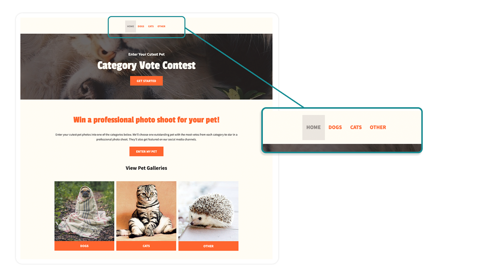 Our Containers, NavBar and Paging Widgets allow you to create sub-navigation within your campaign, helping you to break up content as you would with any of the “big brand” website builders. With this feature, build microsites for your business, create contests with stages or categories, make landing pages for events, or display any other content you’d like to organize by page.