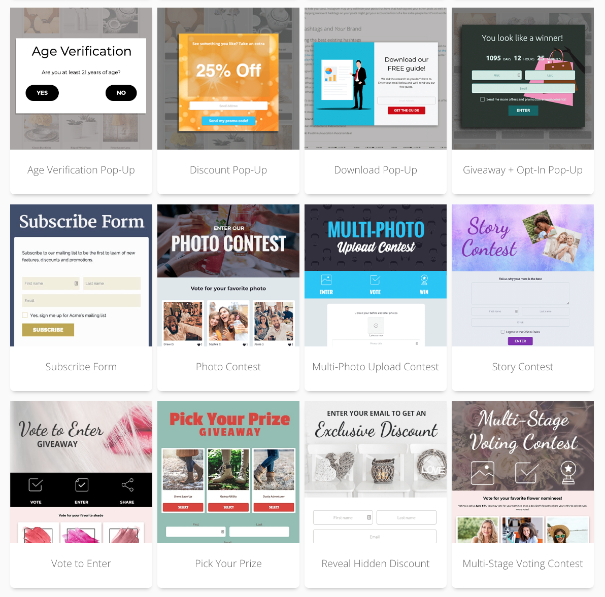 We offer more than a dozen customizable templates explicitly built for pop-ups on your website, but you can display any ShortStack campaign as a pop-up.
