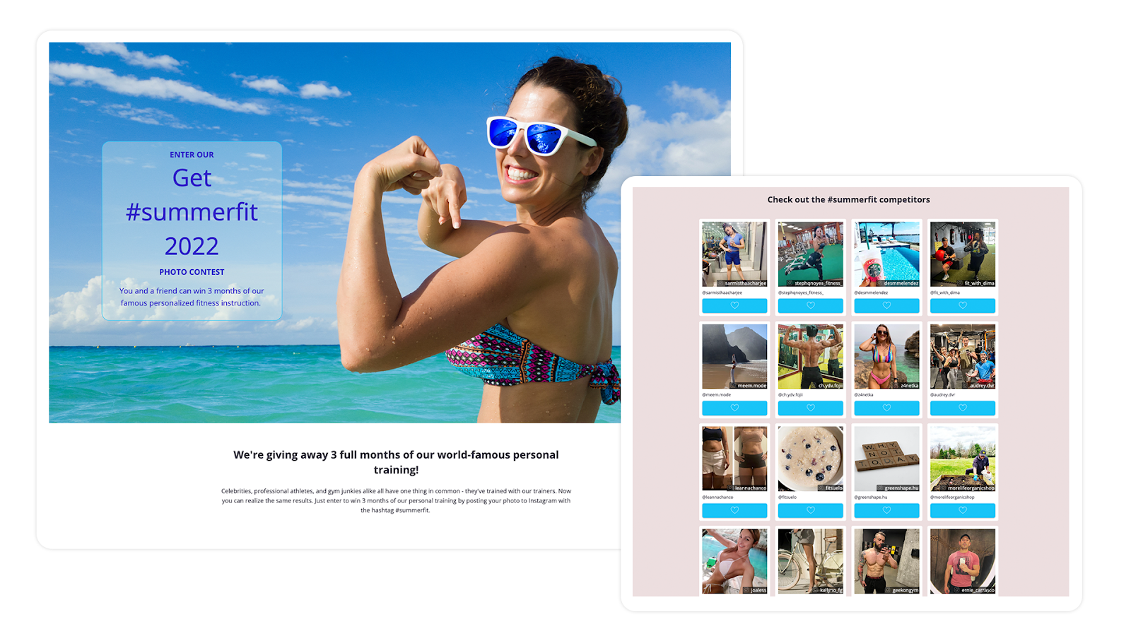 In this example, Instagram posts with the hashtag #summerfit are pulled into a gallery and made accessible on one scrollable page.