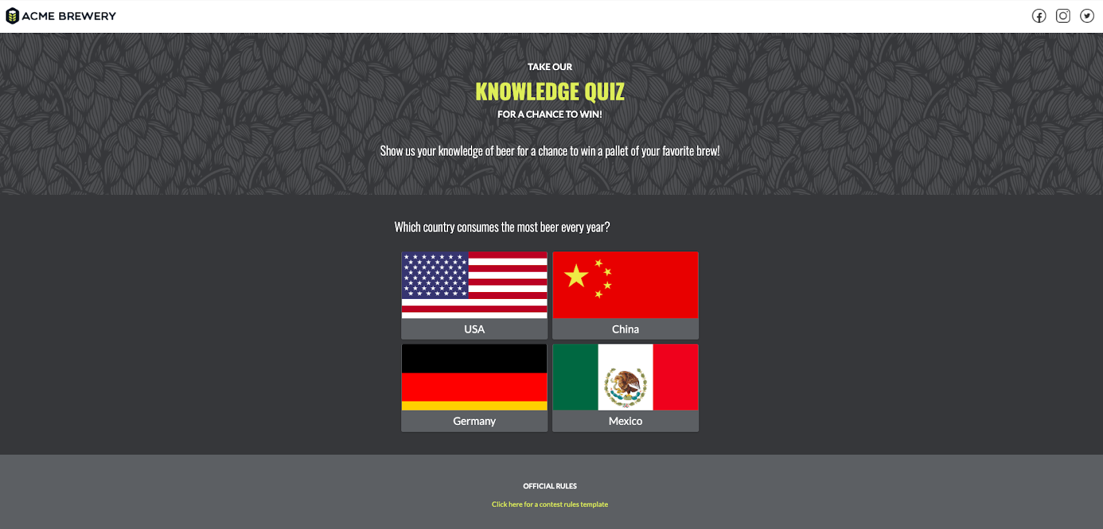In this example built from ShortStack’s Knowledge Quiz template, take the quiz to see the different types of quiz questions. Try it out!