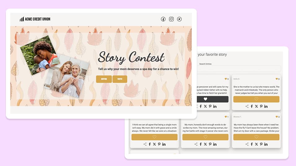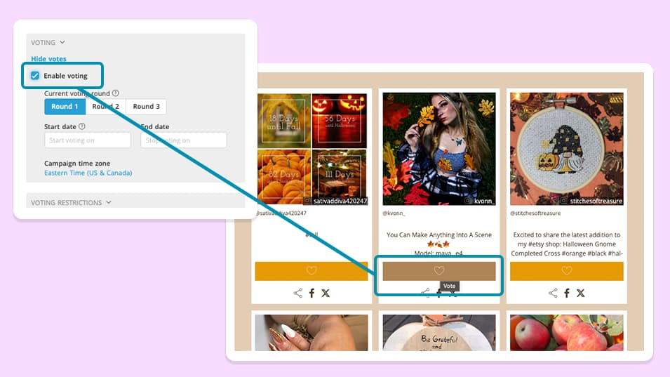 Create content highlighting the season's beauty, such as images of autumn landscapes, seasonal products, or festive decorations. Encourage user interaction by hosting photo contests or challenges that prompt followers to share their fall experiences using specific hashtags. As mentioned previously, hashtagged posts can be imported into a gallery. With certain contest software, like ShortStack, voting can turn that gallery into an easy-to-visit voting contest.