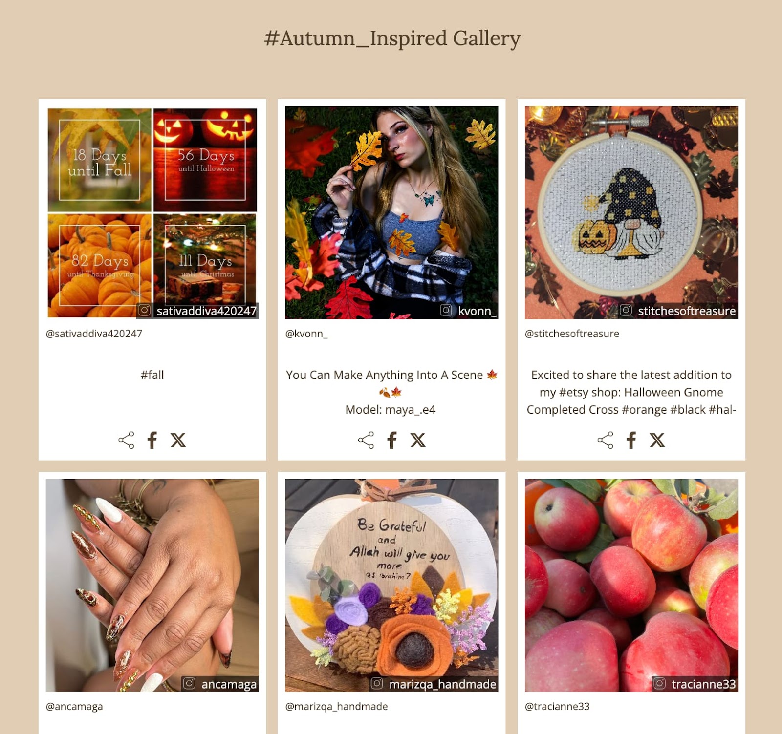 Try creating a Fall-worthy branded hashtag to encourage user-generated content. Then, use an online tool to import those hashtagged posts into a visually captivating gallery of season-related content.