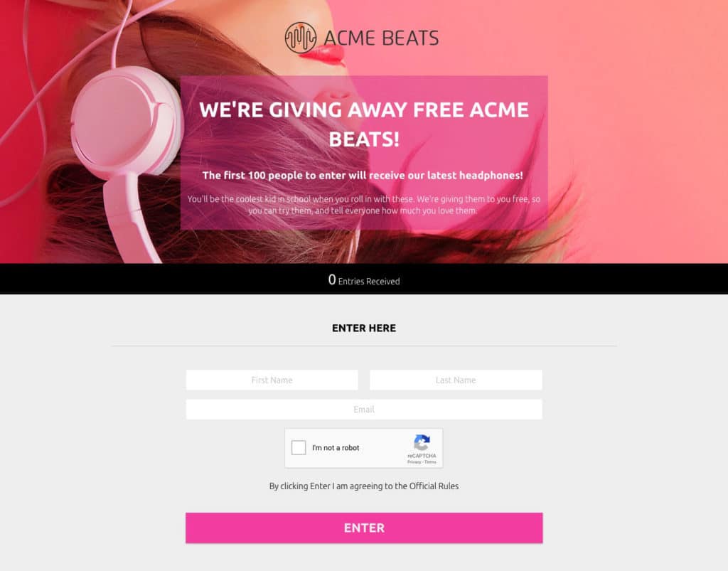 When the product you’re releasing is something tangible - hair care products, electronics, makeup, fitness supplements, etc. - give away free samples by building a landing page with an entry form. You can set a maximum number of entries and include verbiage like “The first 100 people to enter will get to try our new _____.”