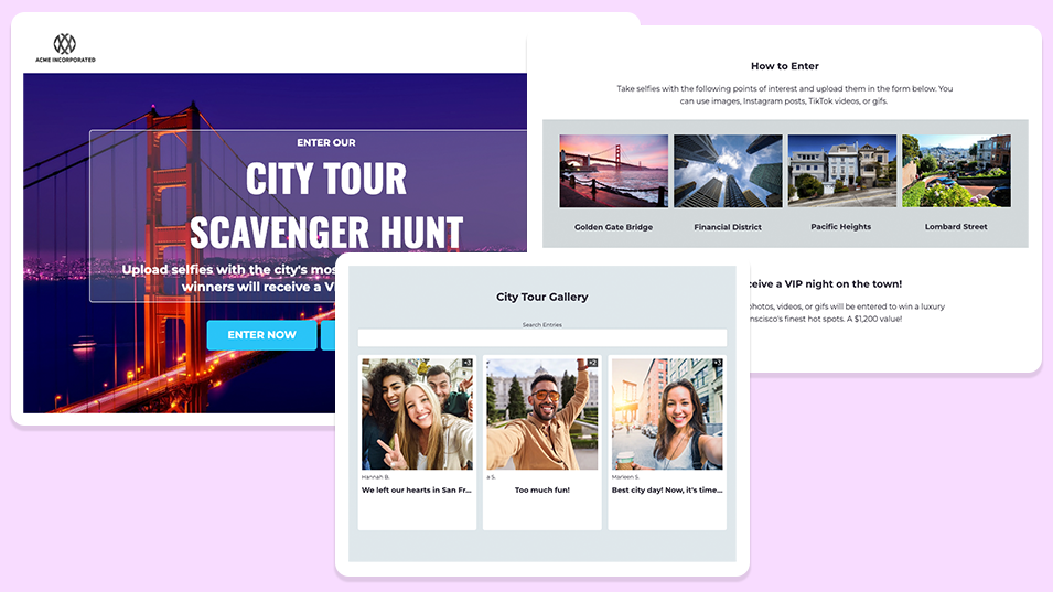 Encourage your audience to capture and share their summer moments using a specific hashtag posted to Instagram. Then, import the hashtagged posts into a gallery to be voted on. Third-party apps like ShortStack give you the ability to build a branded page to display entries. Apps such as these offer added benefits such as voting fraud prevention, entry management, and much more.