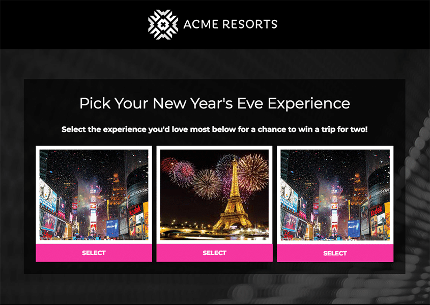 Not everyone shares the same opinion on what is considered the “perfect” New Year’s Eve. Some folks would give anything to be in Times Square to watch the ball drop live, while others wouldn’t miss dinner and champagne with their significant other. Create a contest with three very different NYE experiences, then allow people to enter to win their perfect NYE.