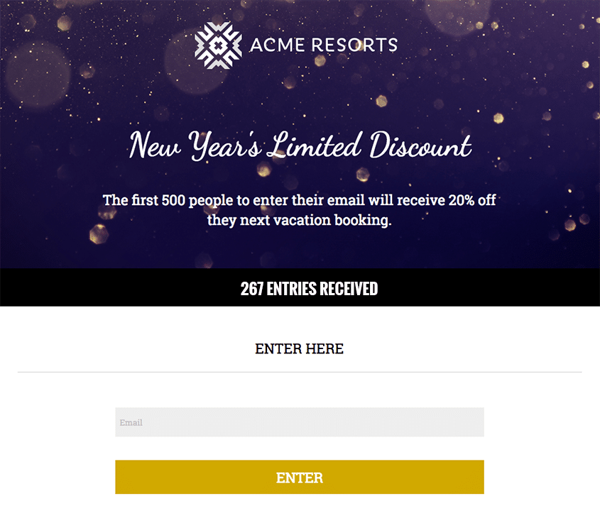 Make your customers feel special on New Year’s Eve with a discount or VIP access that is only available to people who sign up via your campaign.