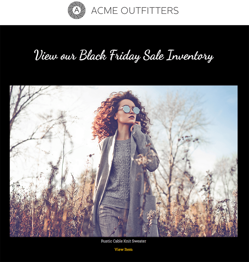 A week or two before Black Friday, send out some sneak peek emails featuring the products you will have on sale.