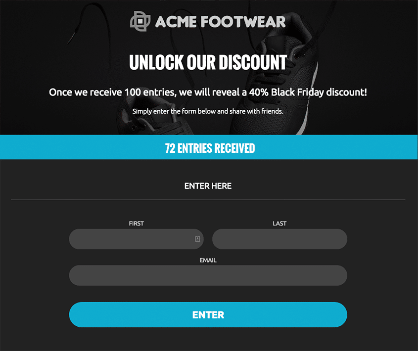 Throughout the day on Black Friday, set up several flash sales. With these sales, enable a limited number of people to claim the discount code or freebie. This will encourage people to visit your campaign throughout the day in order to snatch up one of the sales.