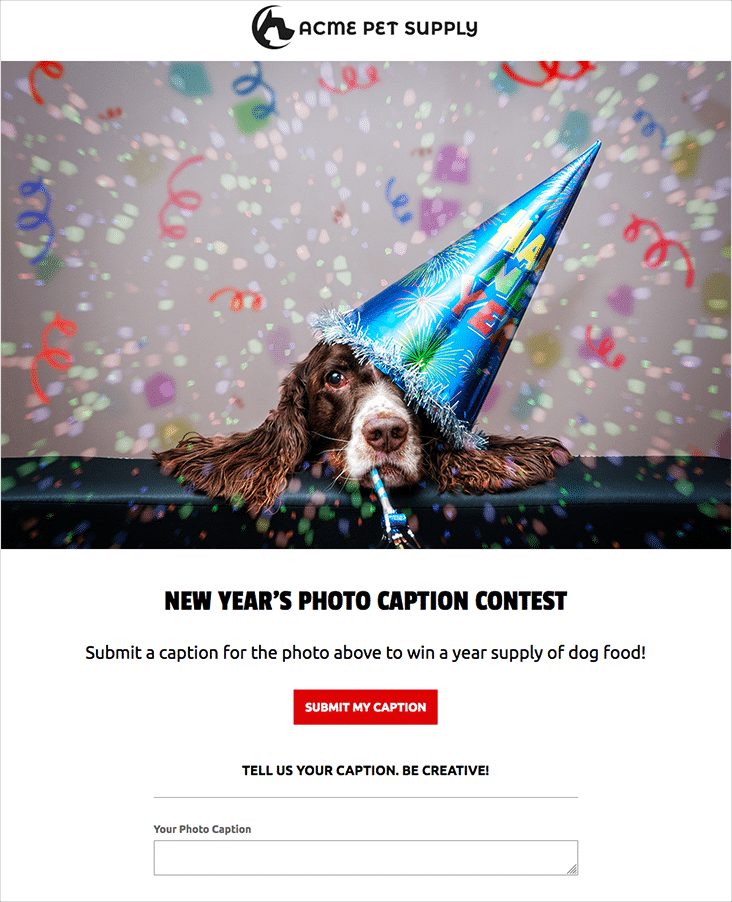 New Year’s Eve is all about fun. Ask folks to submit a caption for a silly NYE scene to be entered to win a prize. Better yet? Include your brand in the image somehow. Choose the winner based on the most votes, and encourage entrants to share their captions (and use your image as the Share Image that displays when they share) to gain more votes.