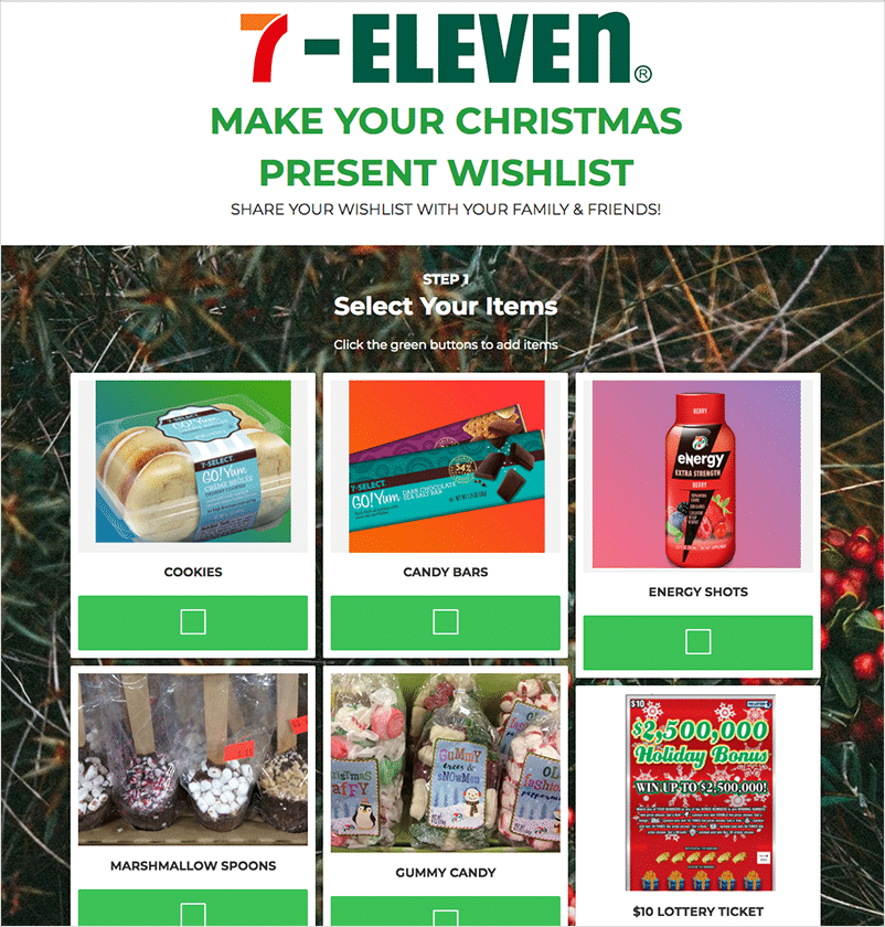 Wishlist campaigns are an awesome way to promote brand awareness because wishlist makers want to share their lists with folks who might be interested in purchasing them a gift. Create a campaign where folks can choose products from your store for their wishlist, which they can then submit for a chance to win it. Encourage entrants to share their wishlists with their friends and family.