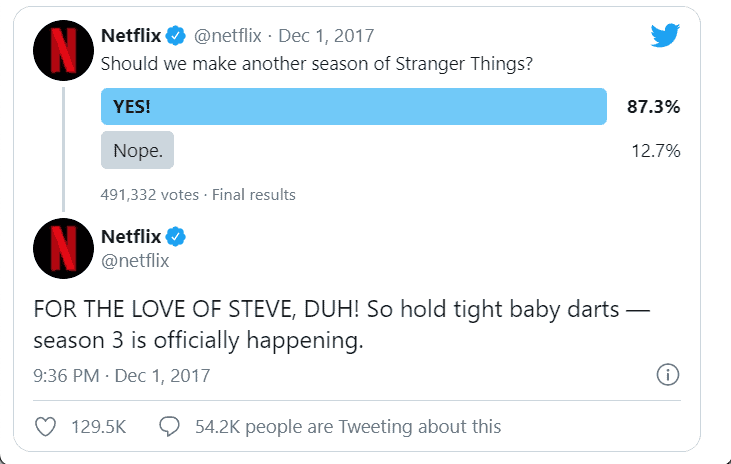 Netflix regularly uses polls on X to allow followers to vote for their favorite characters and storylines. Not only does this foster conversation, particularly around new releases, but it also gives audiences a sense of partnership with the brand.